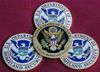 Designed and produced exclusively for the DHS Training Center, this 1.5in round, 3mm, 10K gold plated, full color hard enamel on both sides challenge coin features the DHS logo on side #1 and the "FEDERAL" eagle + "Office of Homeland Security" text on side #2. Available for purchase by all.