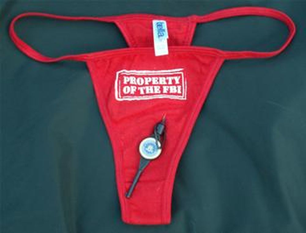 Nothing says "I Love You!"...quite like a "Property Of The FBI" Thong.  Available in FIVE hot colors, screen printed with flexible-stretchable ink.  Complete with CUSTOM "FBI" seal design handcuff key.  Available for purchase ONLY by FBIRA shops and others with permission.  Originally inspired by the FBIRA shop in Miami.  All proceeds benefit the Miami FBIRA shop.