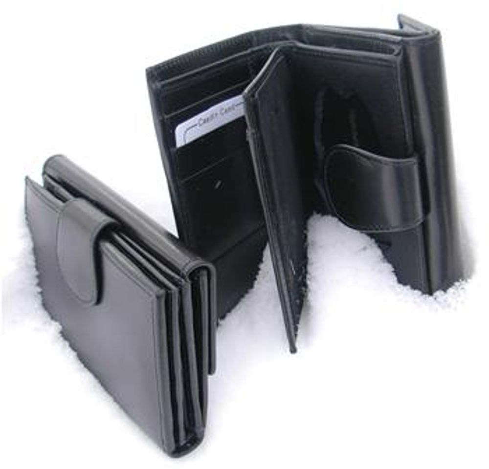 This great little wallet includes slots for your credit cards, a back flap for folding money and a snap closing coin purse.