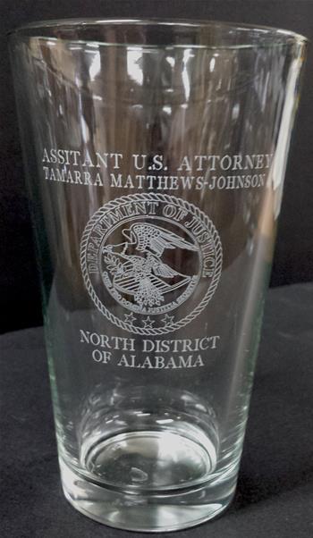 Enjoy your favorite beverage in this 16oz pint glass. Makes any ice cold beverage taste better. Diamond engraved and may be customized with your District name at no additional charge.
